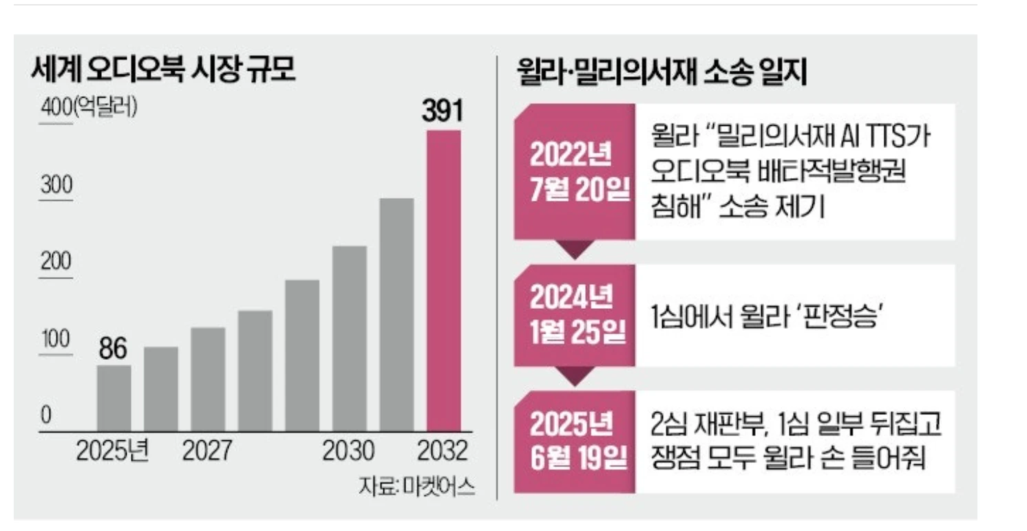 하지만 2심 재판부는 TTS 기능 제공 역시 오디오북 독점 유통권, 즉 배타적발행권을 침해하는 행위라고 결론