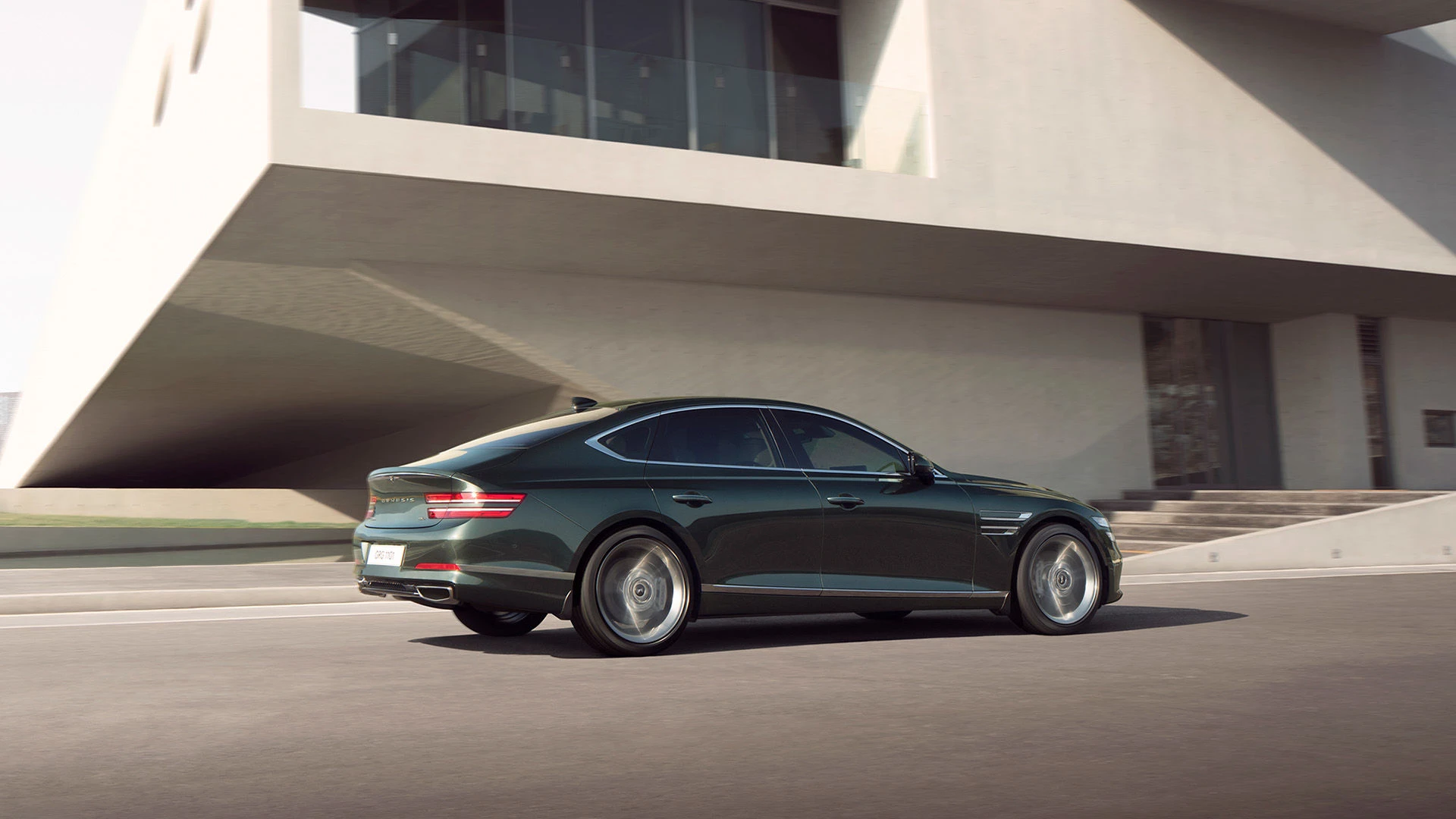 From the front to the athletic elegant profile, and the dual mufflers which reflect the crest grille, the G80 delivers the most refined proportions and stately qualities a rear-wheel drive sedan can have.
