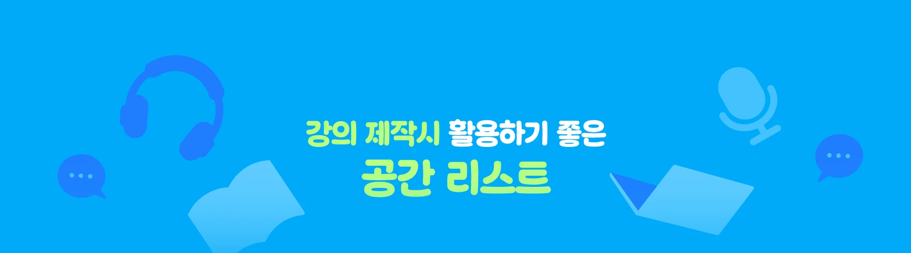 지식공유자 여러분을 위해 강의 제작시 활용하기 좋은 공간을 정리해보았습니다.