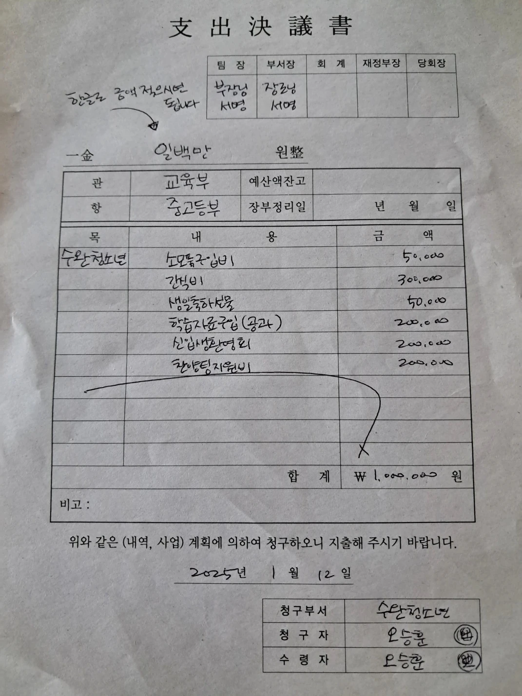 매달 영수증과 지출결의서 첨부☆(서명필수)