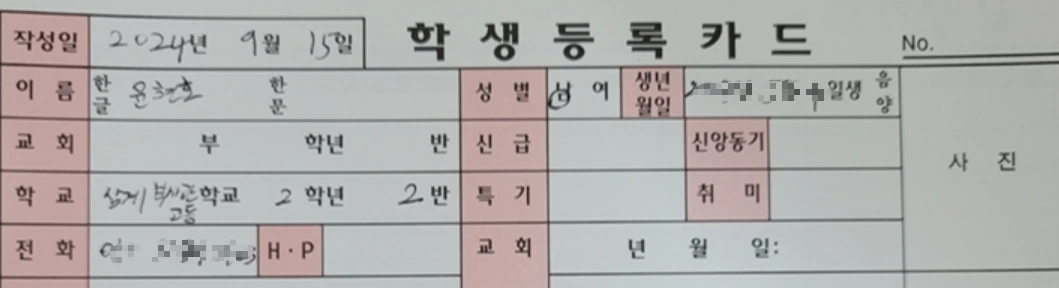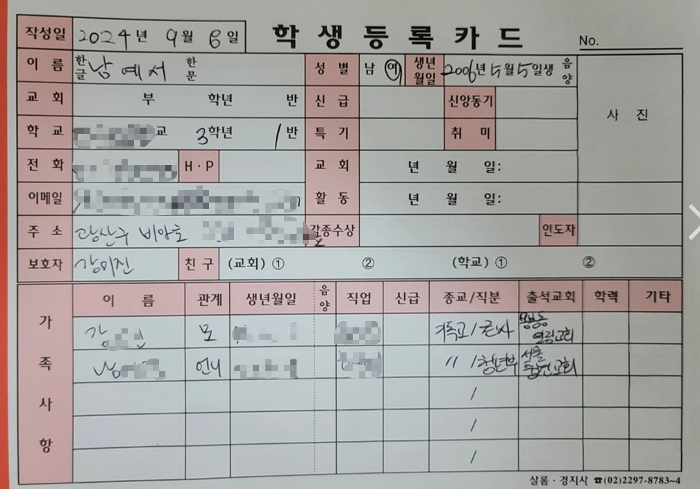 24.09.15. 새친구 3명(노유진) 등록, 청년선생님(안소미) 제자