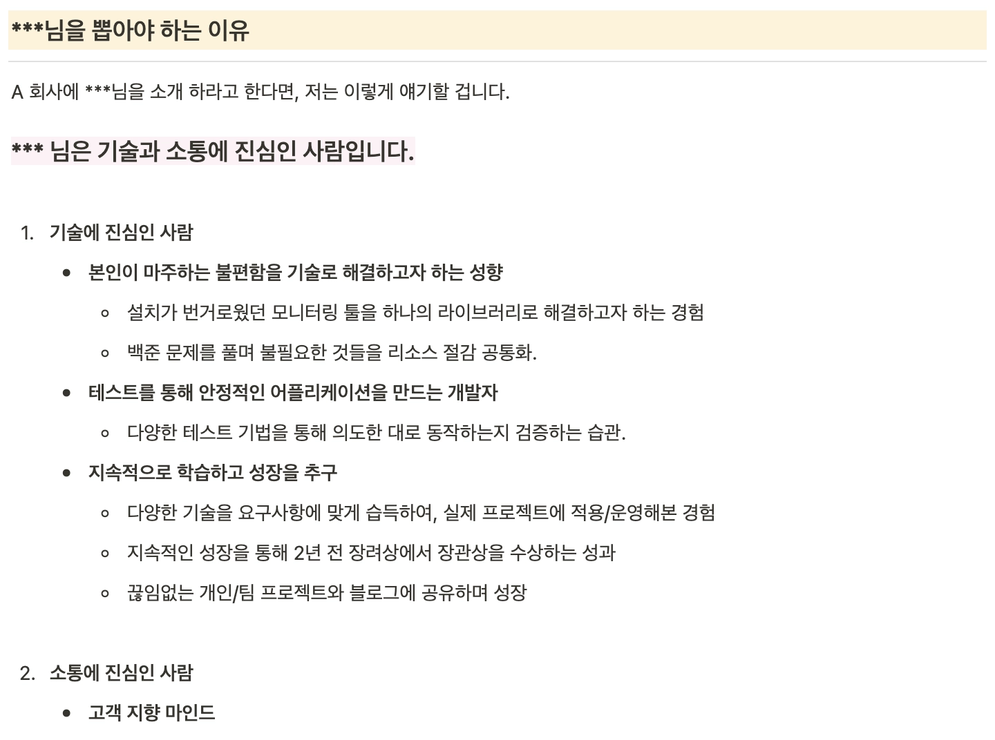 제출해주신 자기소개서 / 포트폴리오를 기반으로