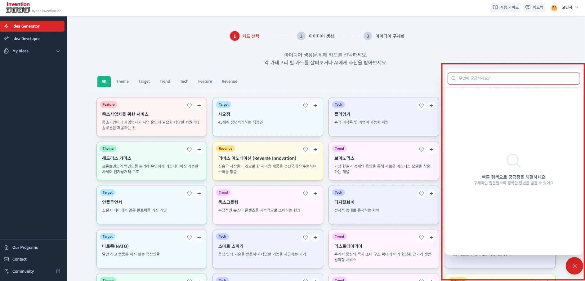 복잡하게 여러 페이지를 돌아다니며 찾아볼 필요없이 인벤션덱AI 안에서 쉽게 질의응답이 가능합니다.