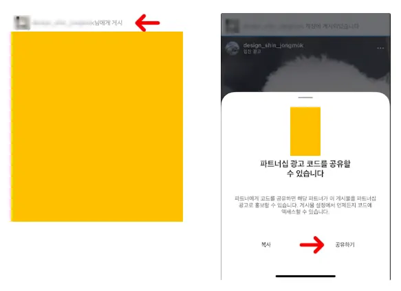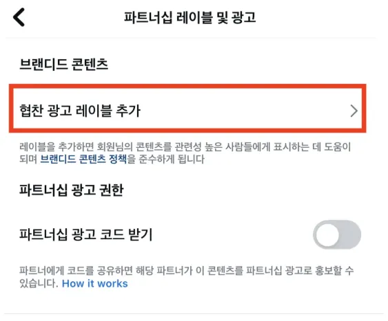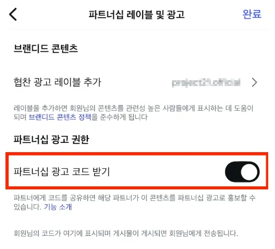 1. 게시물 업로드 시 파트너쉽 레이블 및 광고 클릭