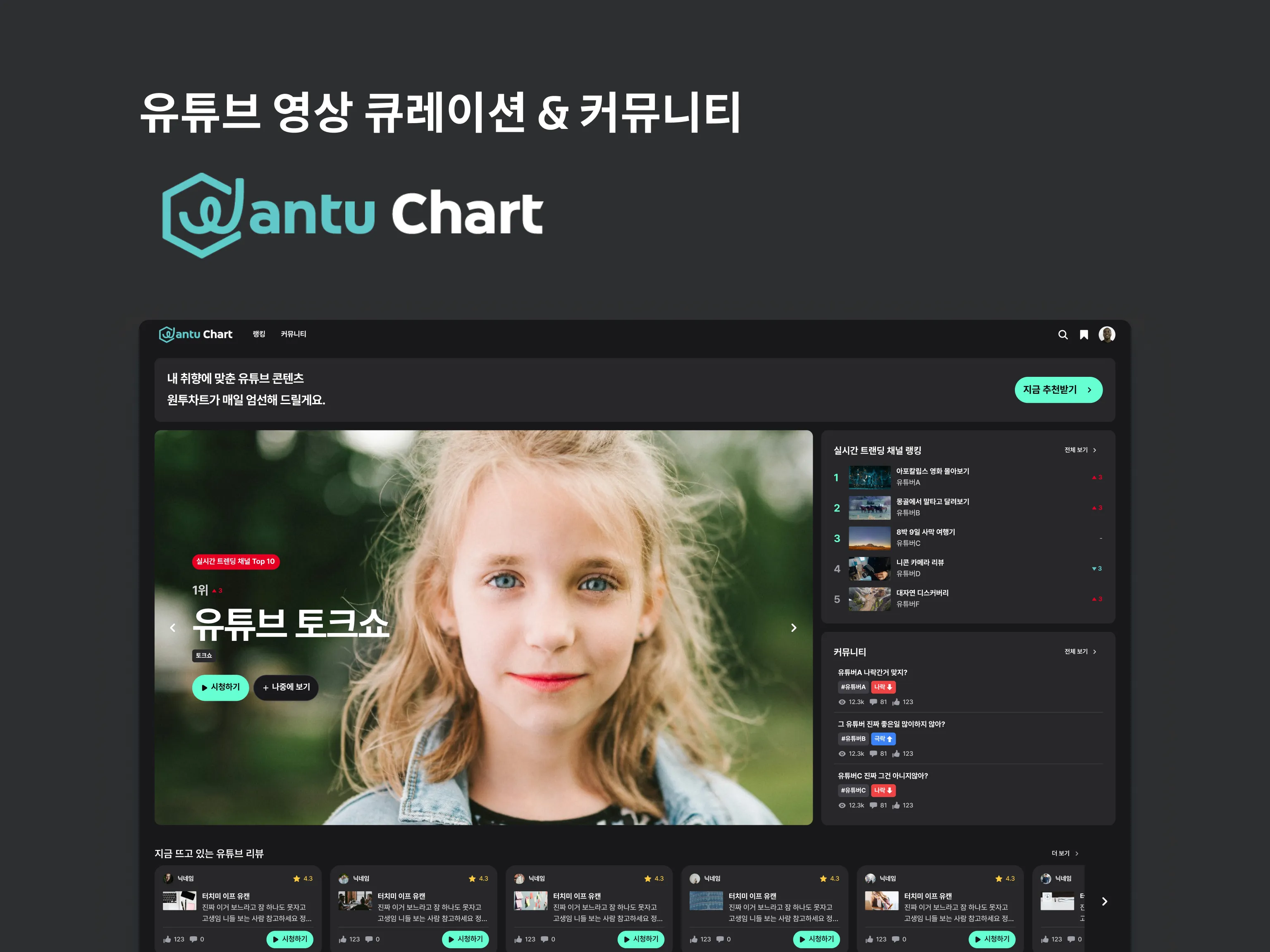 유튜브 영상 큐레이션 & 커뮤니티 원투차트