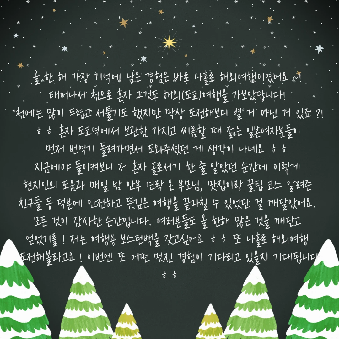 2025년에도 새로운 도전, 멋진 경험 많이 하셨으면 좋겠습니다!