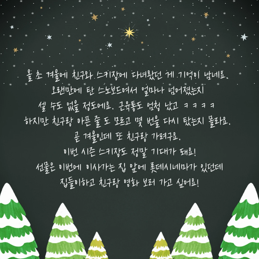 이번 시즌 스키장도 다치지 않게 조심히 다녀오시고