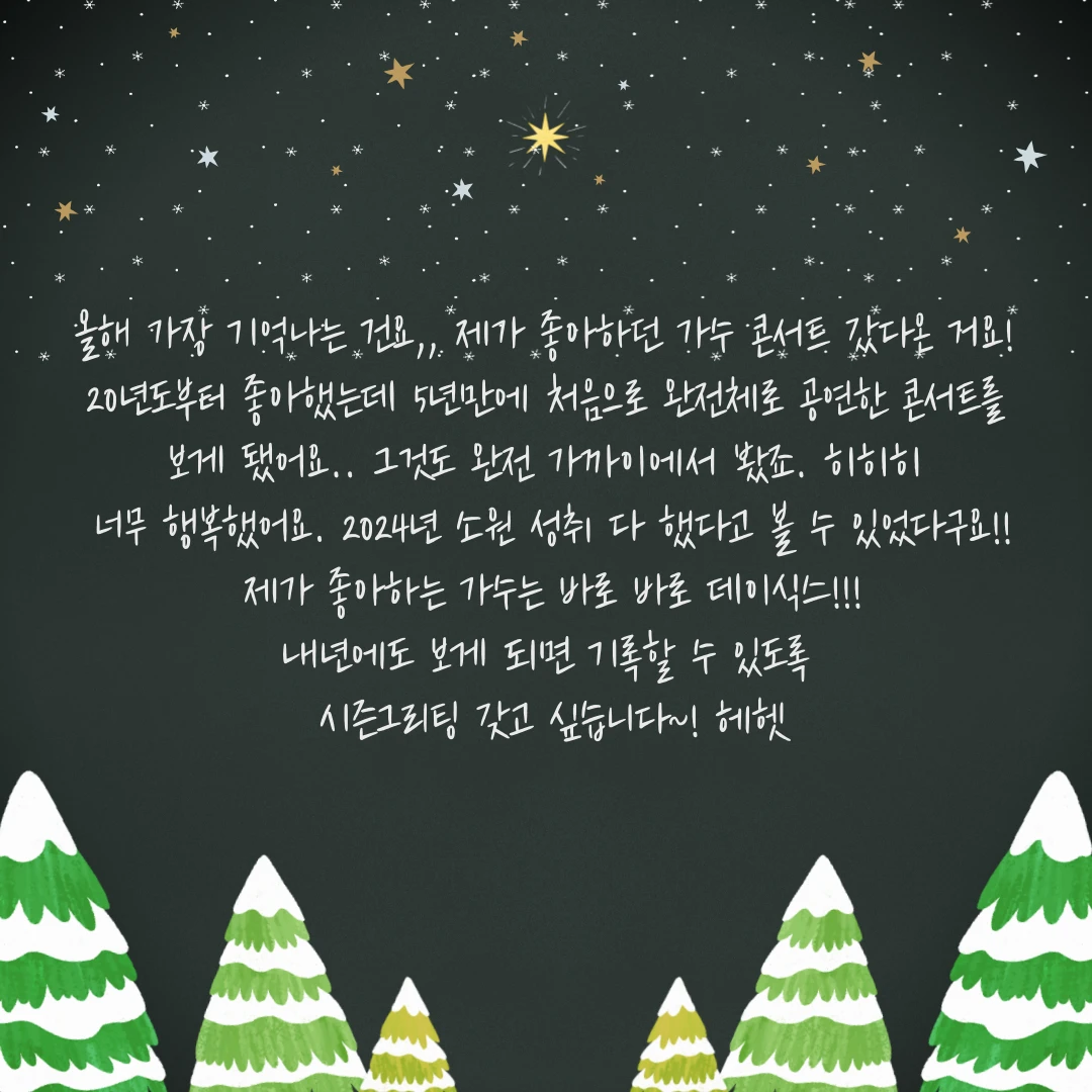 저니랩 산타도 데이식스 노래를 너무 좋아하는 나머지 참지 못하고 이렇게 답장을 쓰게 되었습니다..ㅎㅎㅎ