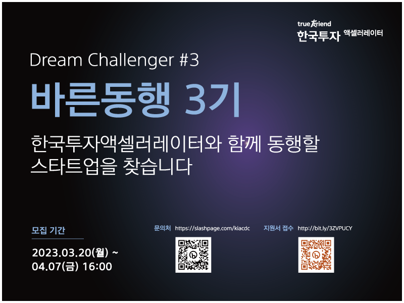 한국투자액셀러레이터 DC 바른동행 3기 기업을 모집합니다.