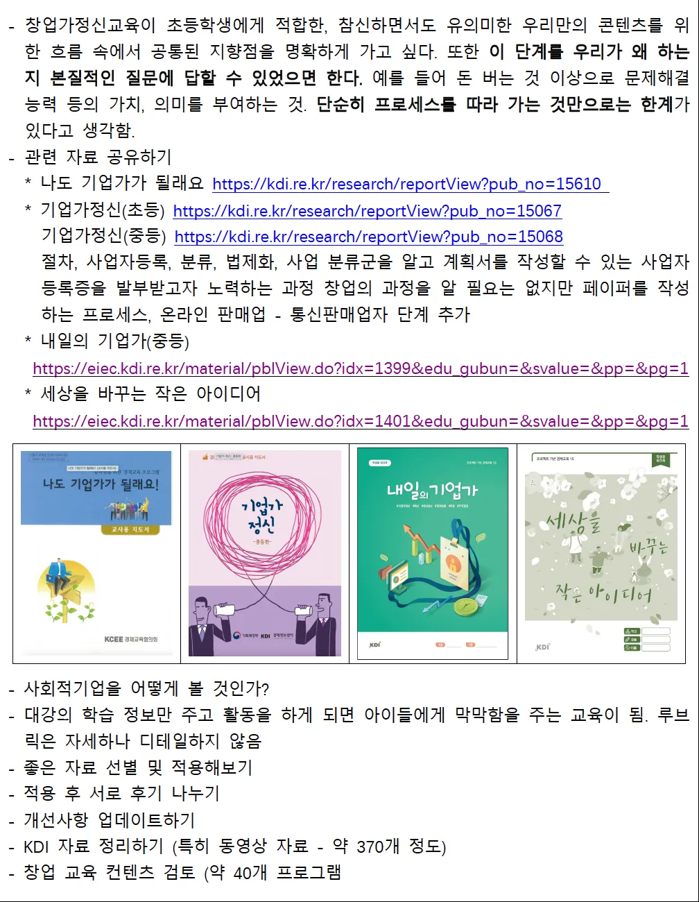 초등 창업가정신교육 수업 자료 탐색
