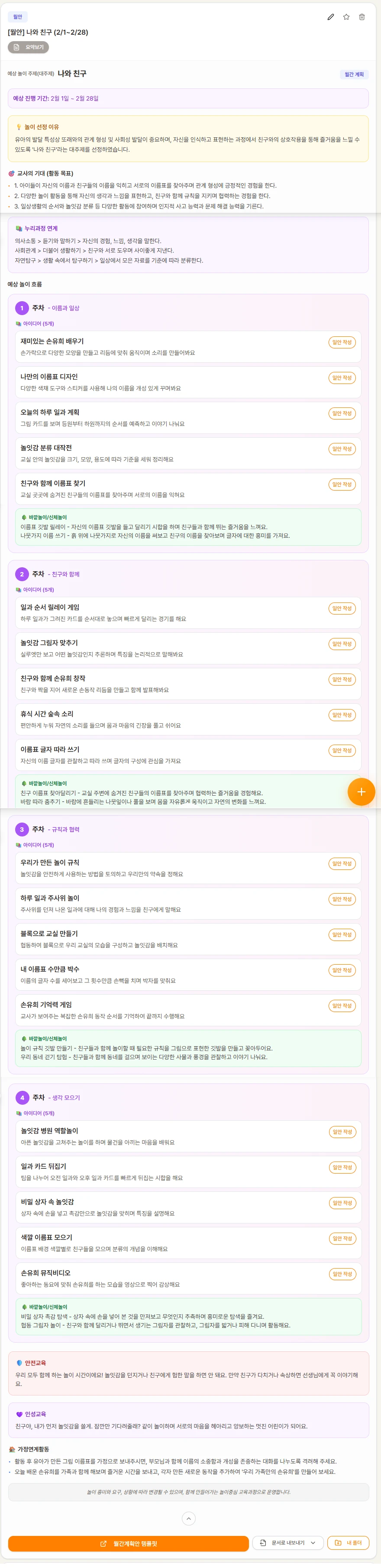 놀이아이디어부터 상세한 일안, 주안, 월안까지 한 번에!