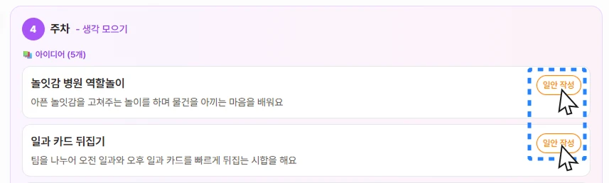 원하는 아이디어를 선택해 일안으로 생성하거나 주안, 월안으로 구성할 수 있어요.