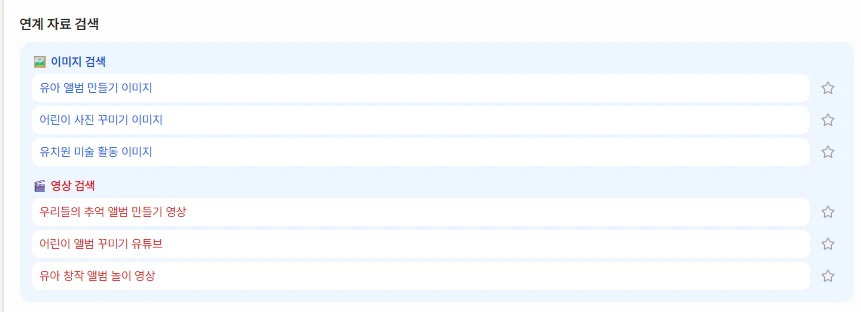 놀이계획안 맞춤 키워드로 검색된 구글 이미지 검색/ 영상 검색 링크가 제공돼요.