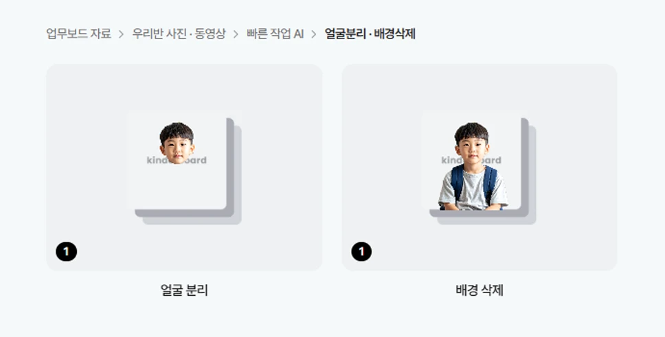 내 핸드폰에는 내 사진만, 아이들 사진은 킨더보드에! 하루에도 수십 장씩 쌓이는 아이들 사진, 일일이 정리하고 관리하기 너무 힘드시죠? 이제 킨더보드가 앱으로 사진을 찍으면 교사의 핸드폰이 아닌 드라이브에 저장한 후 아이별로 분류까지 해드립니다. 사진 분류 진행 전, 미리 챙겨야 할 것! 정확한 분류를 위해서는 우리 반 아이들의 사진이 등록되어 있어야 해요. 아직 사진 등록을 진행하지 않으셨다면, '우리 반 및 아이 관리하는 법' 가이드를 확인해 주세요. 1️⃣ 킨더보드에 로그인하신 후 상단 메뉴 중 '업무 보드' → '빠른업무AI-사진분류'를 클릭해 주세요. 2️⃣ 사진을 분류하고 싶은 기준을 선택하세요. 아이 사진 분류: 우리 반 아이들의 얼굴을 인식해서 자동으로 분류해 줘요. 실내·실외 활동 분류: 사진의 배경이 실내인지 실외인지 인식해서 분류해 줘요. 3️⃣ 사진 업로드 창을 클릭해 사진을 추가해 주세요. 4️⃣ 사용할 사진이 저장된 경로에서 원하는 사진을 선택해 주세요. 업무보드 자료: 이전에 킨더보드 AI를 활용해 생성한 자료를 볼 수 있어요. 내 자료: 킨더보드 앱이나 직접 업로드한 자료를 볼 수 있어요. 내 컴퓨터: 컴퓨터에 저장되어 있는 파일을 업로드할 수 있어요.