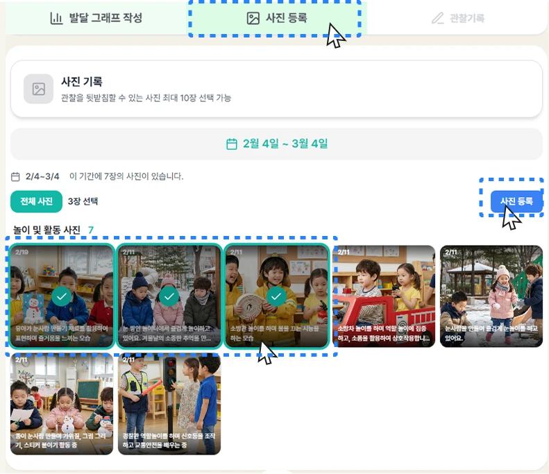 관찰기록에 포함할 사진을 골라주세요.