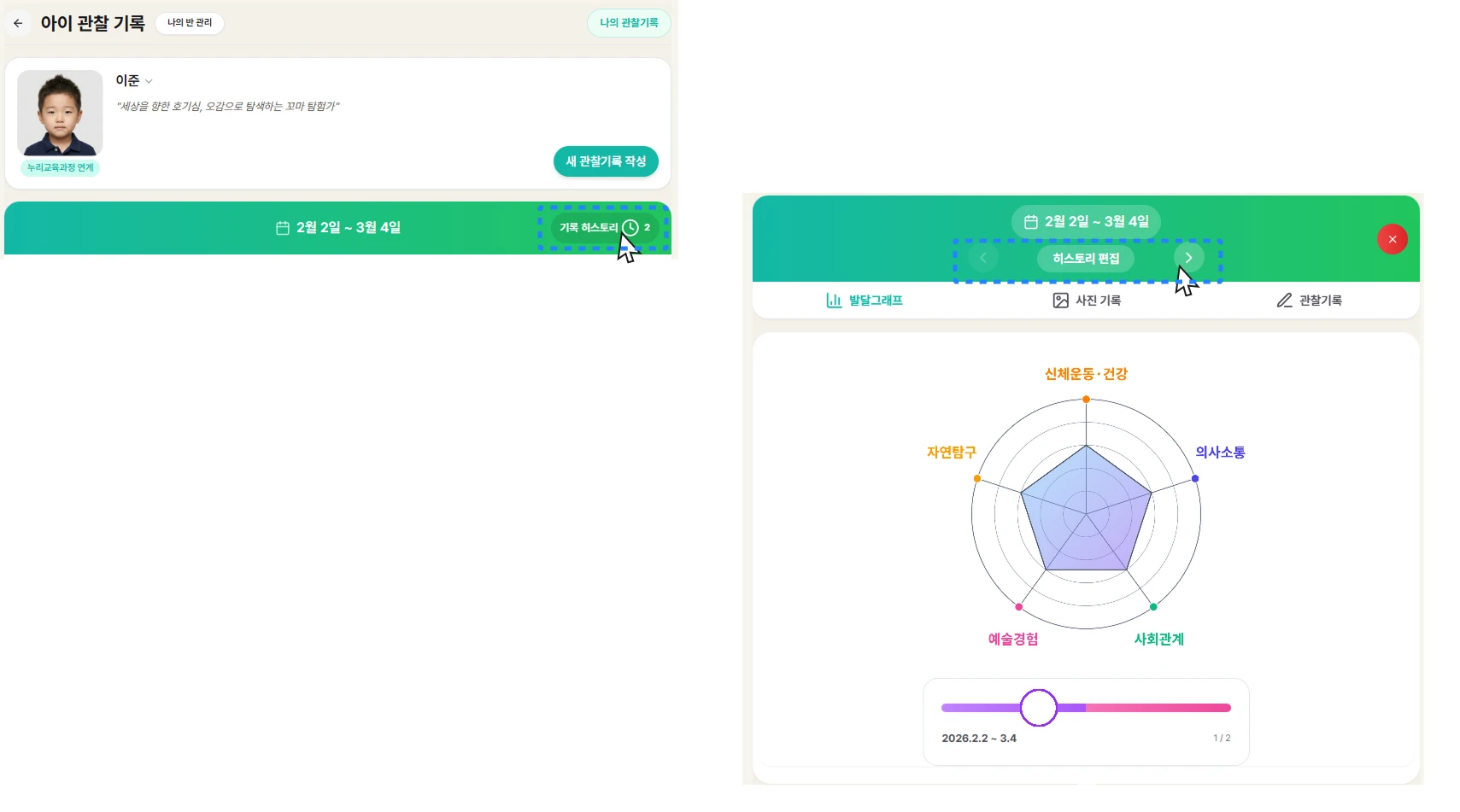 🍯 Tip. 이전 작성한 아이 관찰 평가 내용을 보고 싶다면?