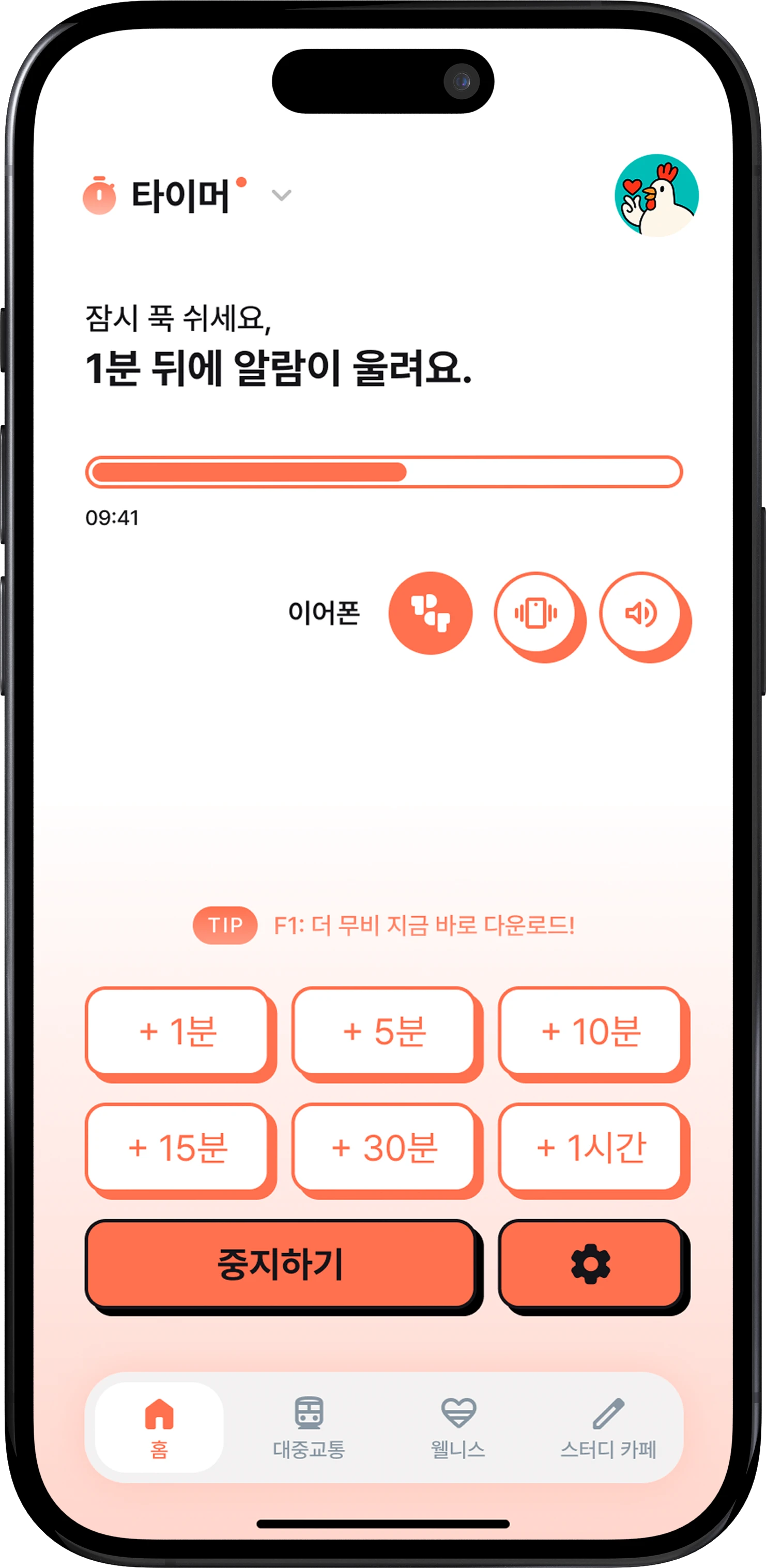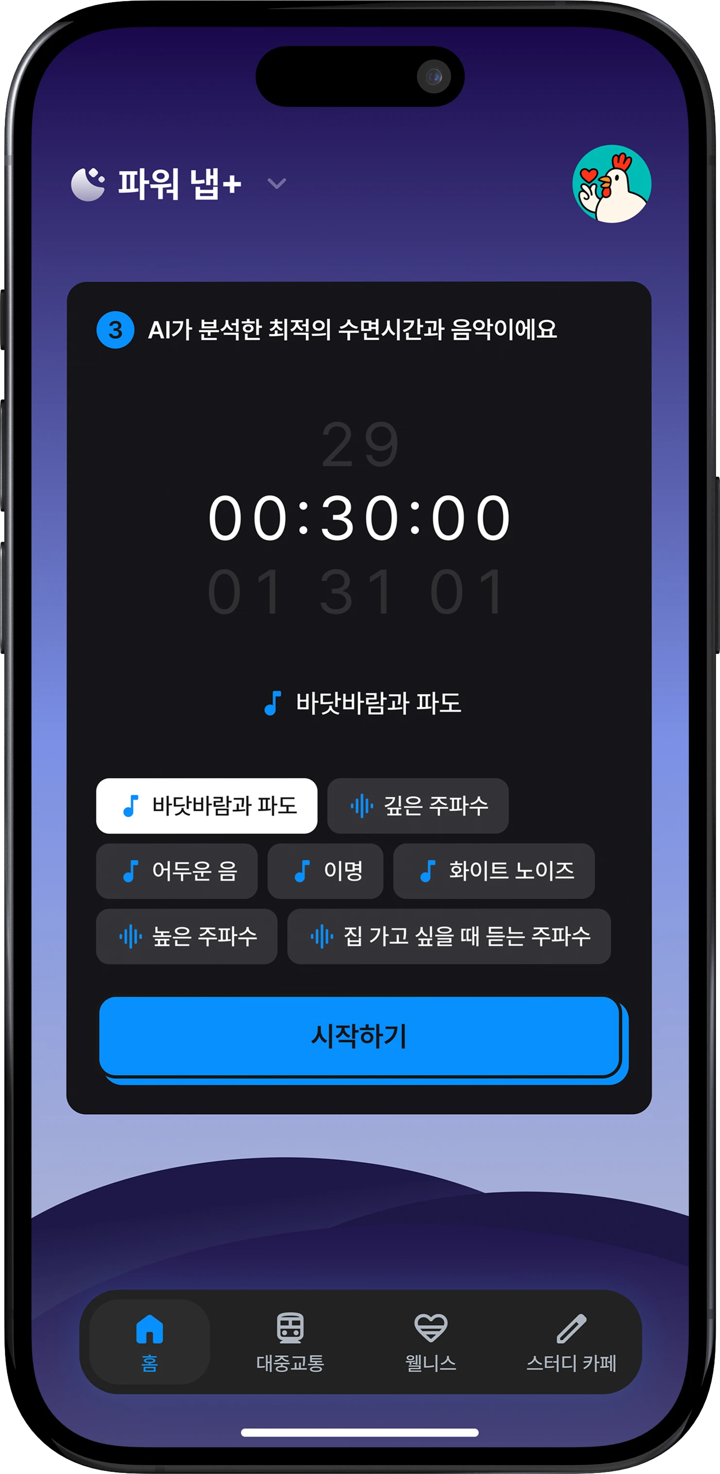 이어폰에만 울리는 쪽잠 알람, 꼬끼오 알람