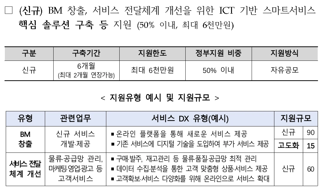 목적: 비제조 분야 빅데이터, AI 등 첨단 ICT 접목