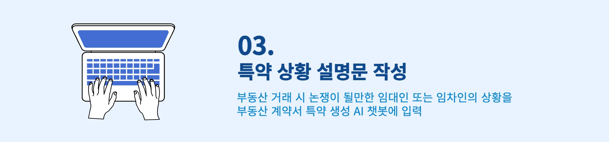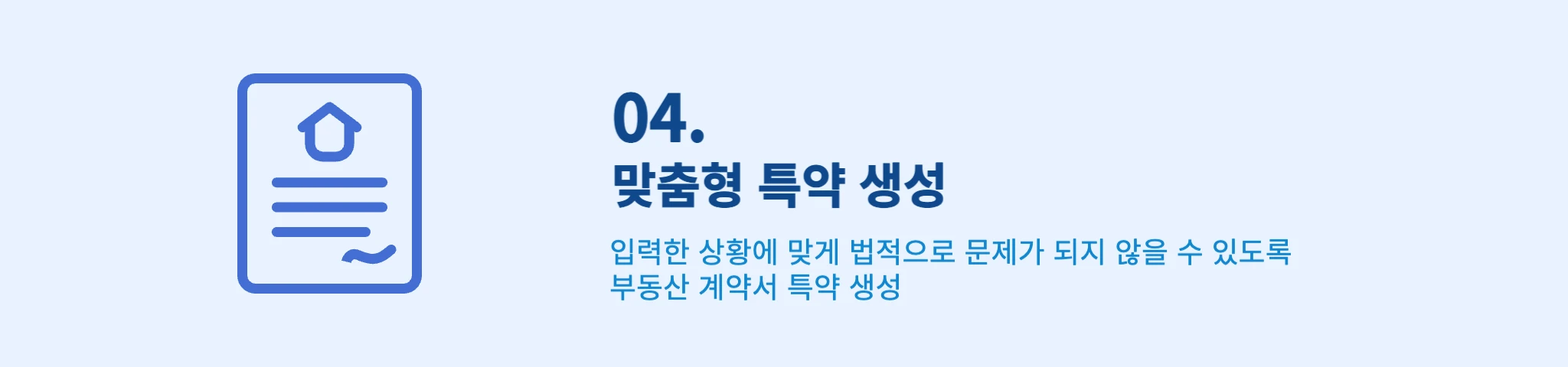 임대인, 임차인의 상황을 입력하면 해당 상황에 맞는 특약 내용 생성합니다.
