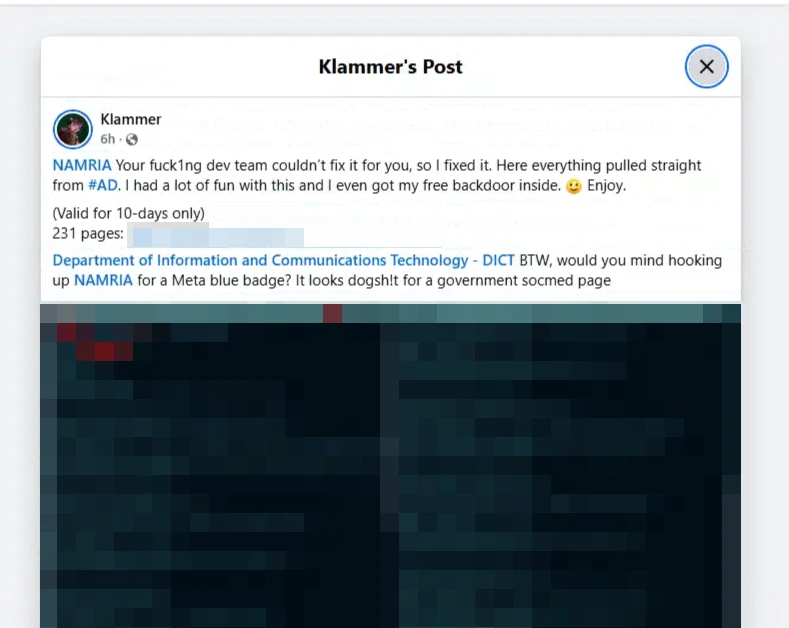 News : NAMRIA Data Breach: Hacker Claims to Leak 231 Pages of Internal ICT Equipment Records