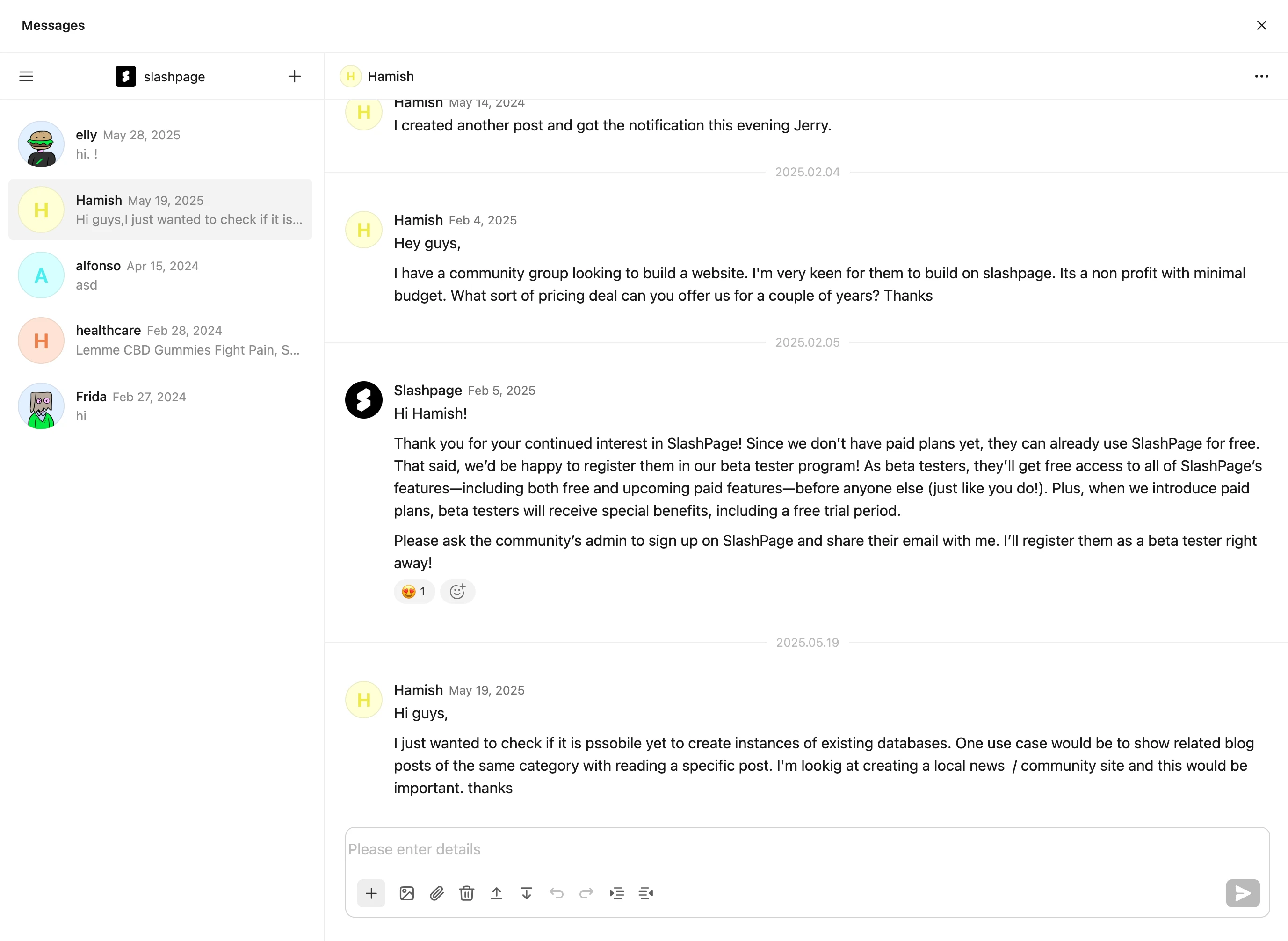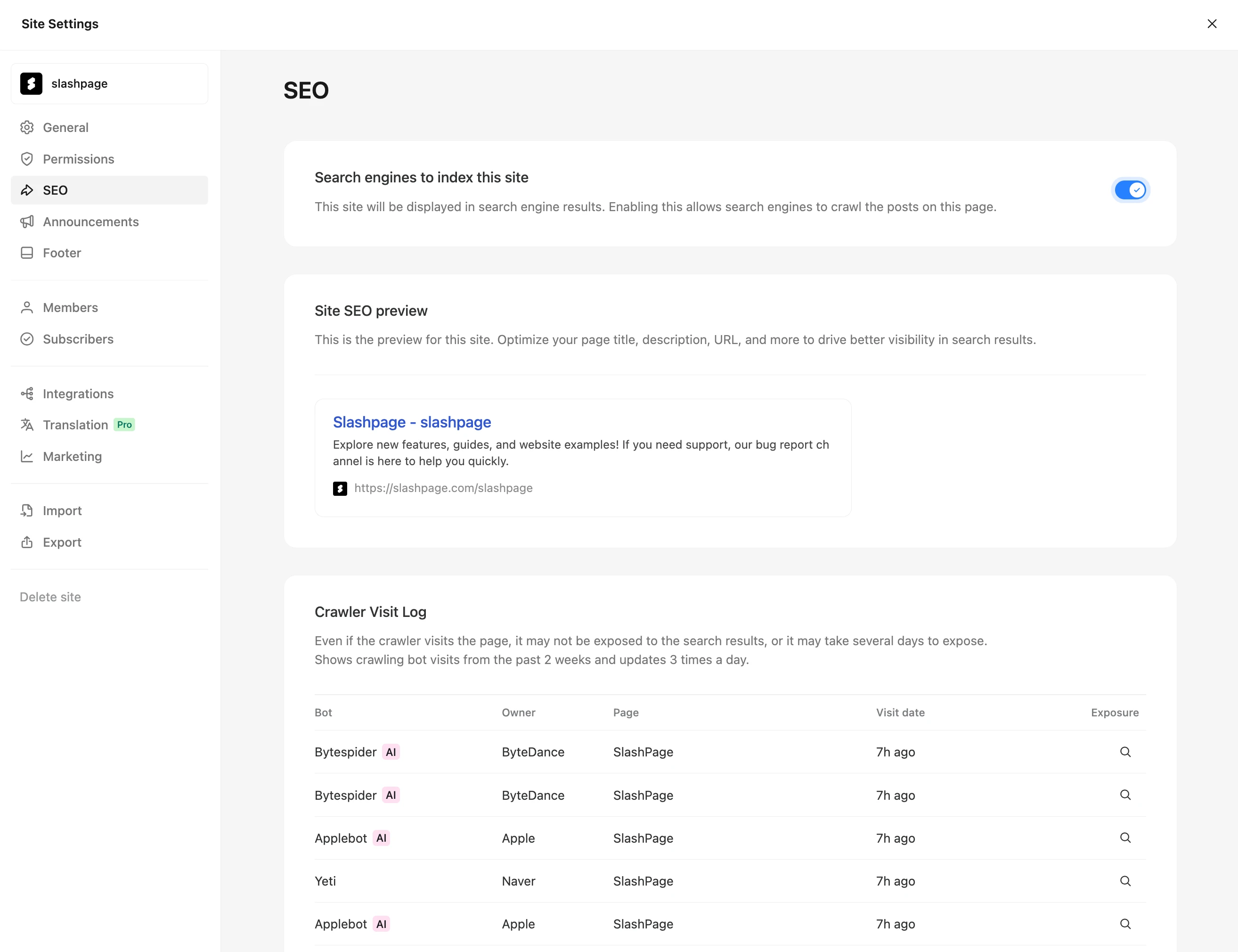 "With Slashpage, I can quickly create beautiful web pages and documents needed for product operations—without any help from the development team. It’s very fast, so there’s no frustration at all. The SEO features are also powerful, and pages get indexed by search engines quickly. It’s a tool that lets me focus entirely on the product and content, rather than environment setup, which I really appreciate."