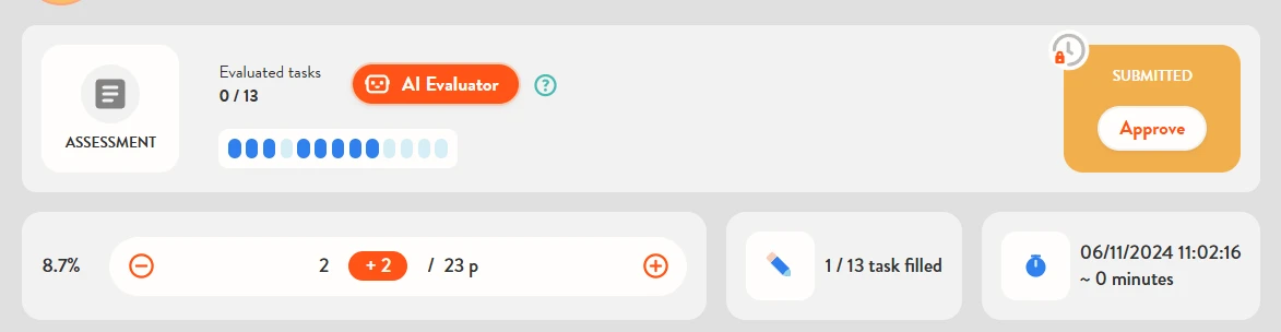 Redmenta는 평가 과정에서 많은 시간을 절약해 줍니다. 하지만 경우에 따라 자동 또는 AI 기반으로 생성된 평가를 확인하고, 직접 재채점(overscoring)하는 것이 바람직할 때도 있습니다. 이 기능에 대해 짧게 알아보세요!
