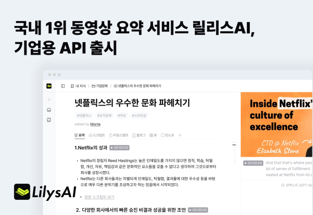 국내 1위 동영상 요약서비스 ‘릴리스AI’, 기업용 API 출시