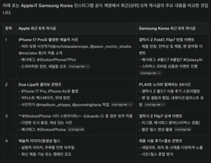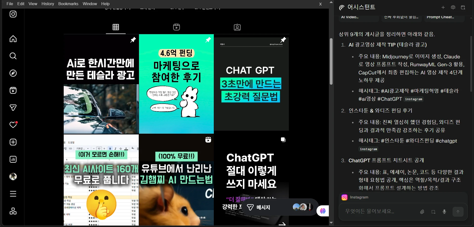 상위 9개의 게시글을 분석해 줘. 주요 내용, 해시태그를 정리해서 알려 줘.