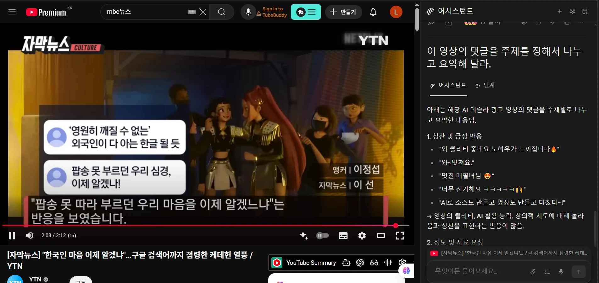 이 영상의 댓글을 주제를 정해서 나누고 요약해 달라.