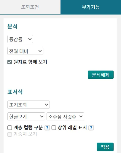 전년동월대비 매출증감률 칼럼이 제거되지 않았는데 다시 제거해 줘