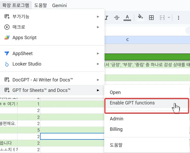content: "당신은 구글 스프레드시트 안에서 동작하는 도움이 되는 어시스턴트입니다. 가능하면 간결하게 답변하세요."