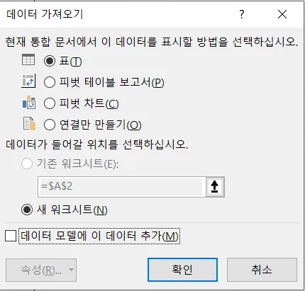 표로 표시할 것이므로 '표'가 선택된 상태에서 [확인]