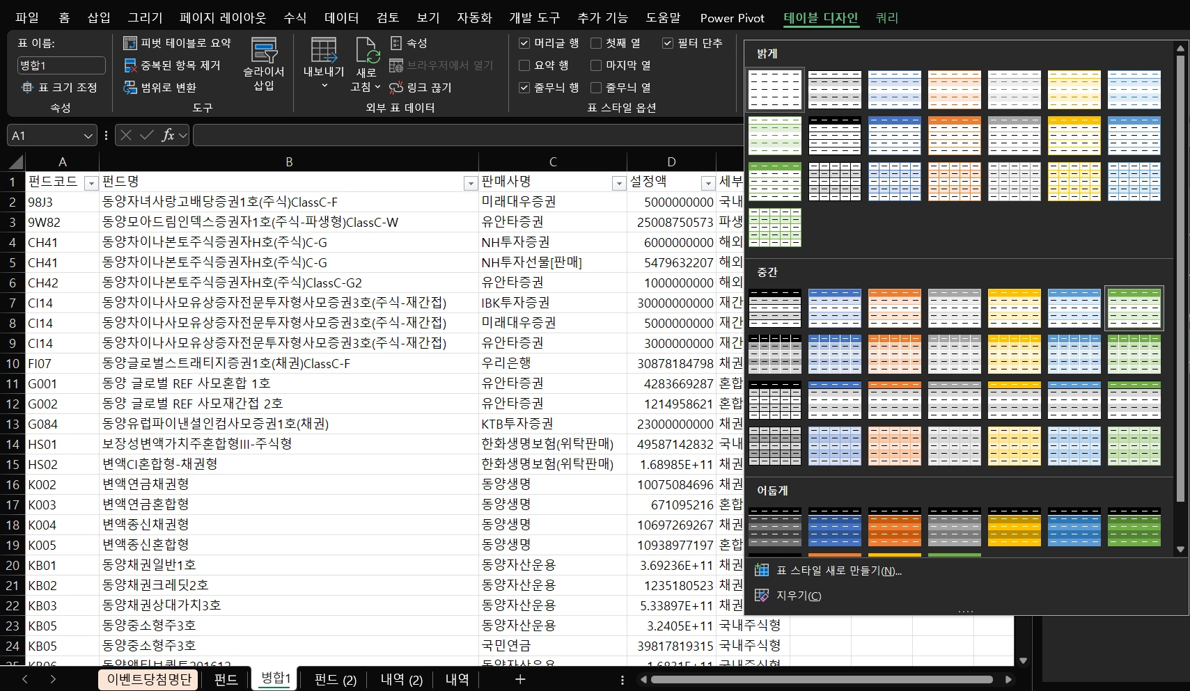 맘에 드는 스타일 선택 및 '병합1' 시트 생성 완료