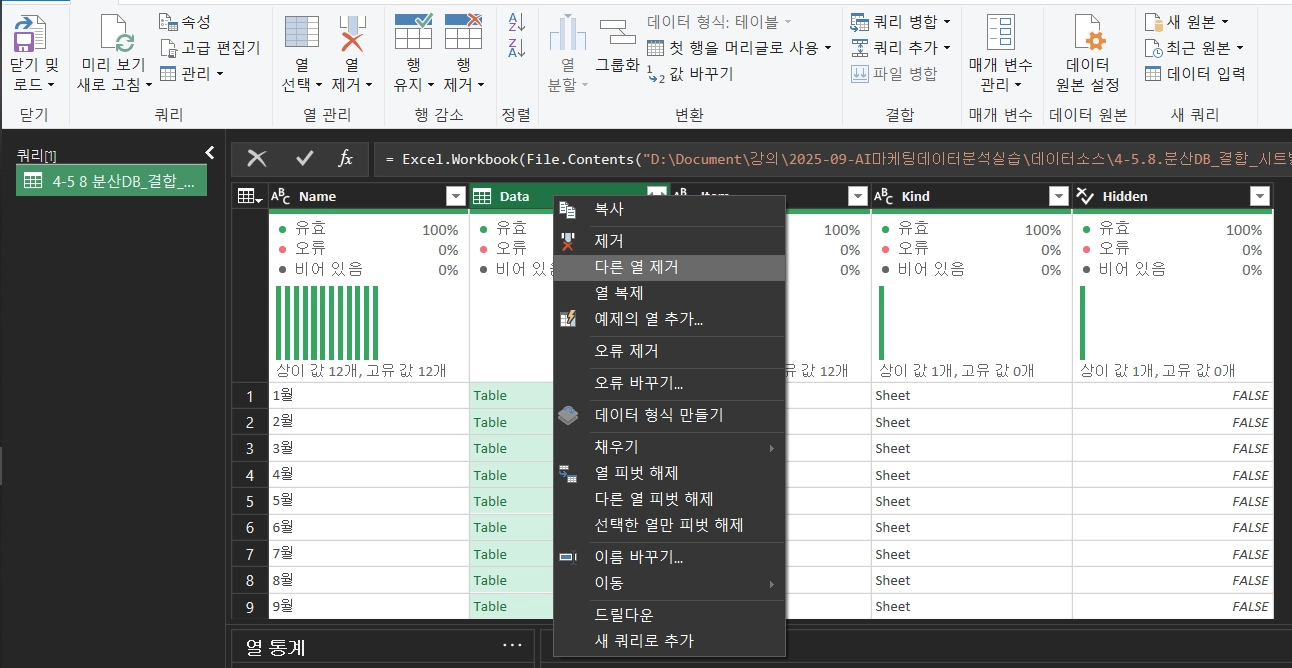 파워쿼리를 열면 항상 먼저 해야할 일 두 가지!
