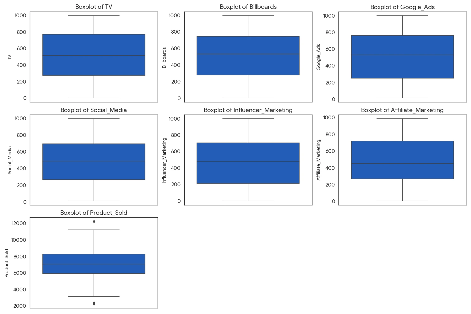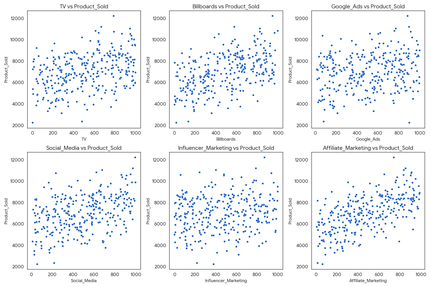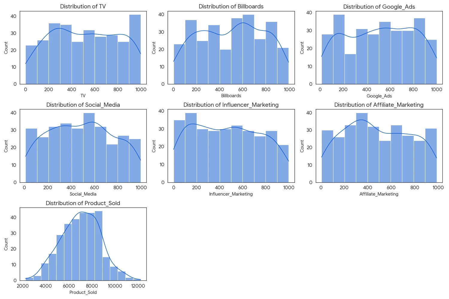 * `TV`, `Billboards`, `Google_Ads` 등 광고비 변수 (숫자)