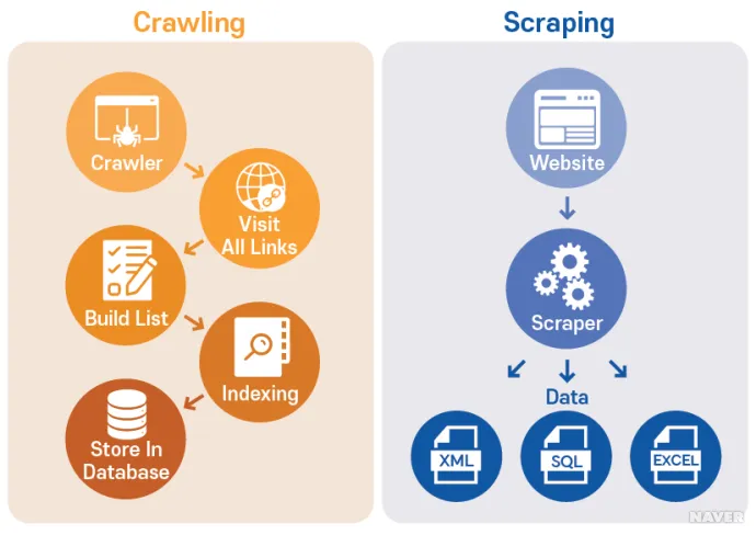 웹 크롤링과 웹 스크래핑은 웹에서 데이터를 수집하는 대표적인 두 방법임