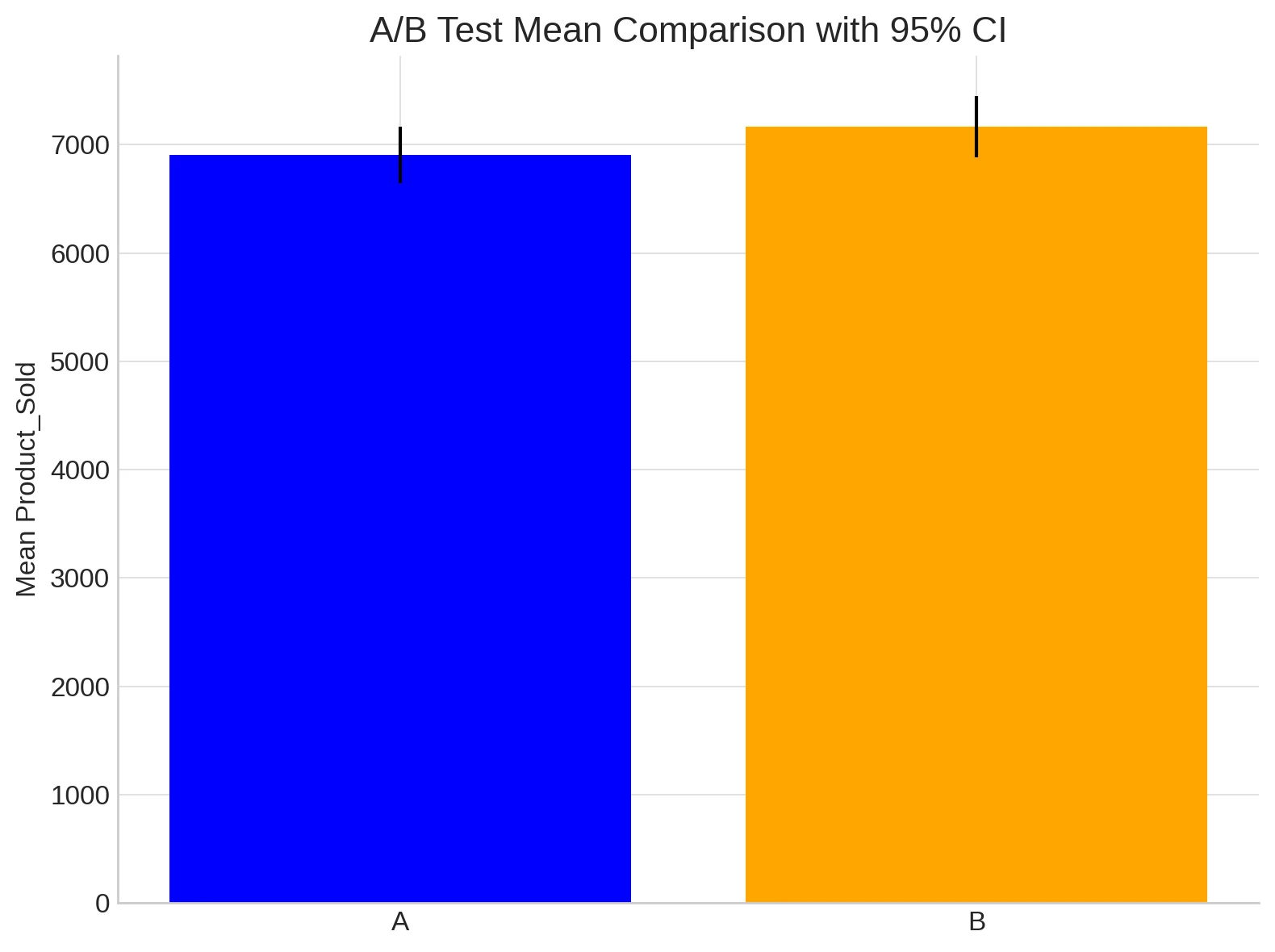 Product_Sold를 기준으로 논문 보고 형식의 A/B 테스트 결과표를 생성해줘.