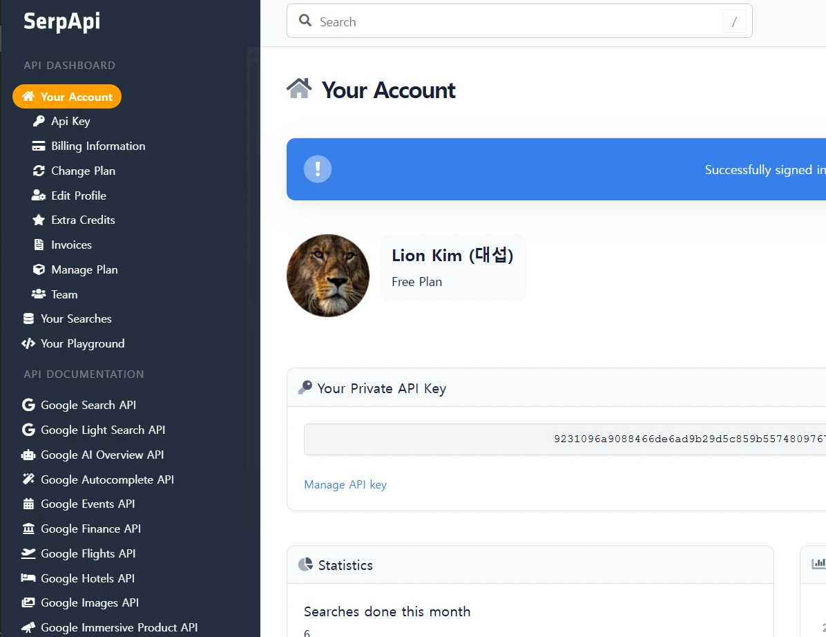 SerpAPI 가입 및 API Key 확보하기