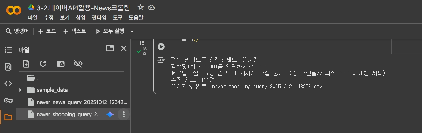 3) 입력 검색량만큼 수집 (API 페이지네이션)