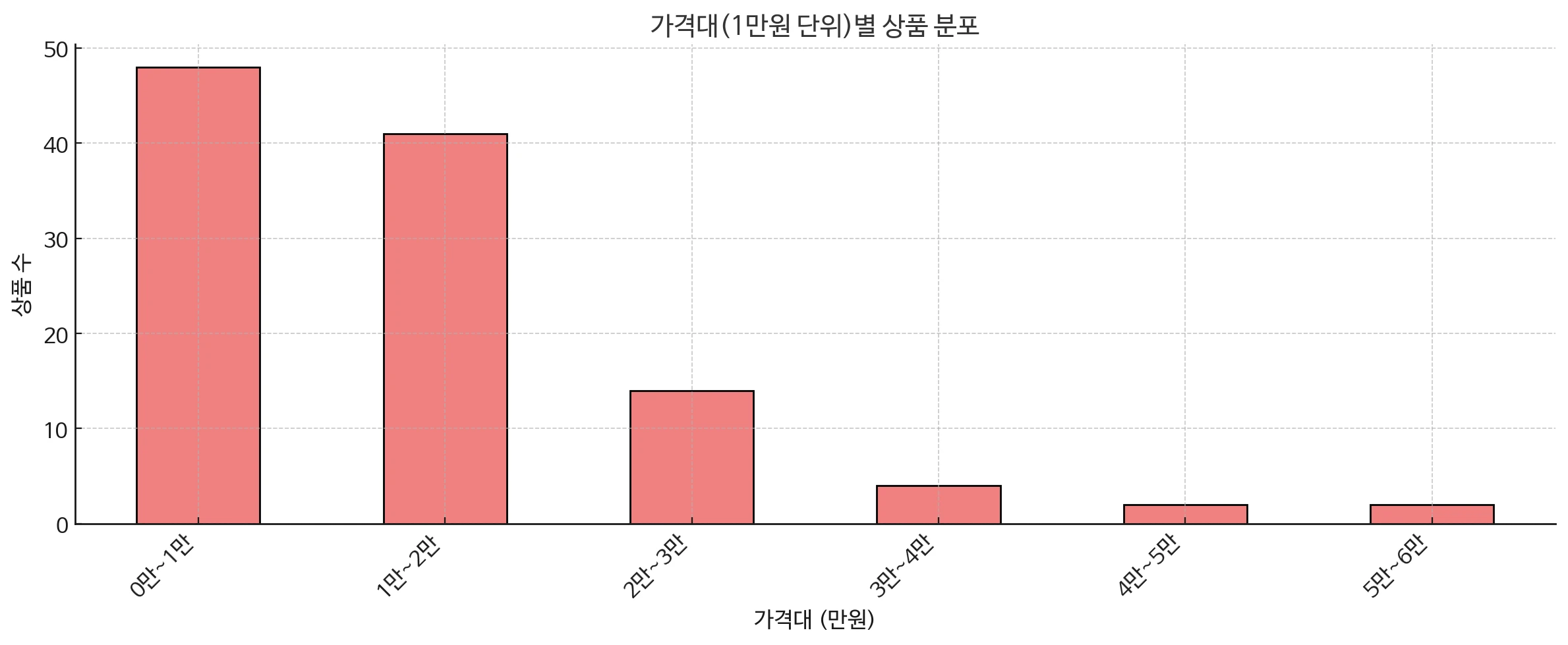 main()가격대에 따른 상품 분포를 시각화해줘.