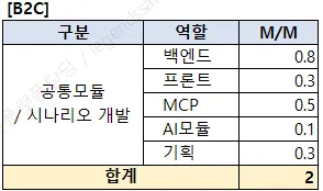 이 외에도 인프라 개발, UI 지원, 총괄 PM 등 추가 인력이 함께 참여하여 업무를 진행하고 있습니다.