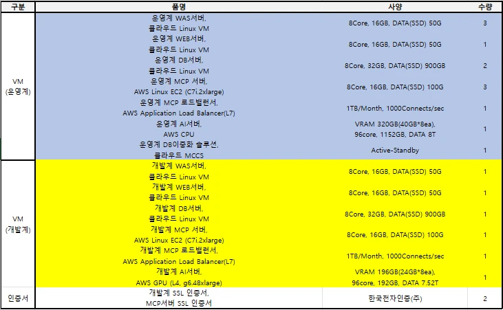 사용 항목: GPU 리소스, MCP 서버, 서비스 구축 및 운영 환경 등