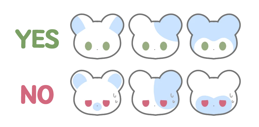 길이가 긴 원단을 사용하기 때문에 눈과 머리색이 유사한 색상 일 경우 잘 보이지 않으니 색상에 차이를 주는쪽을 권장합니다.