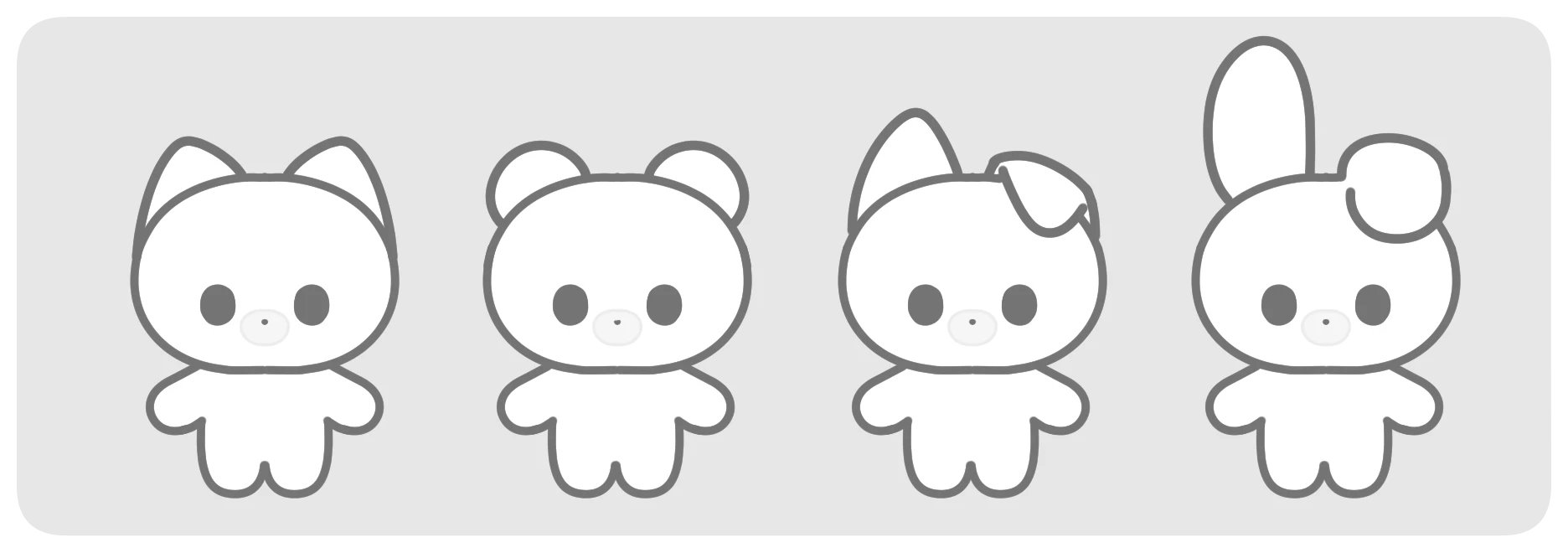 길쭉한 귀 모양은 접거나 안에 솜을 채우는 등의 커스텀이 가능합니다.
