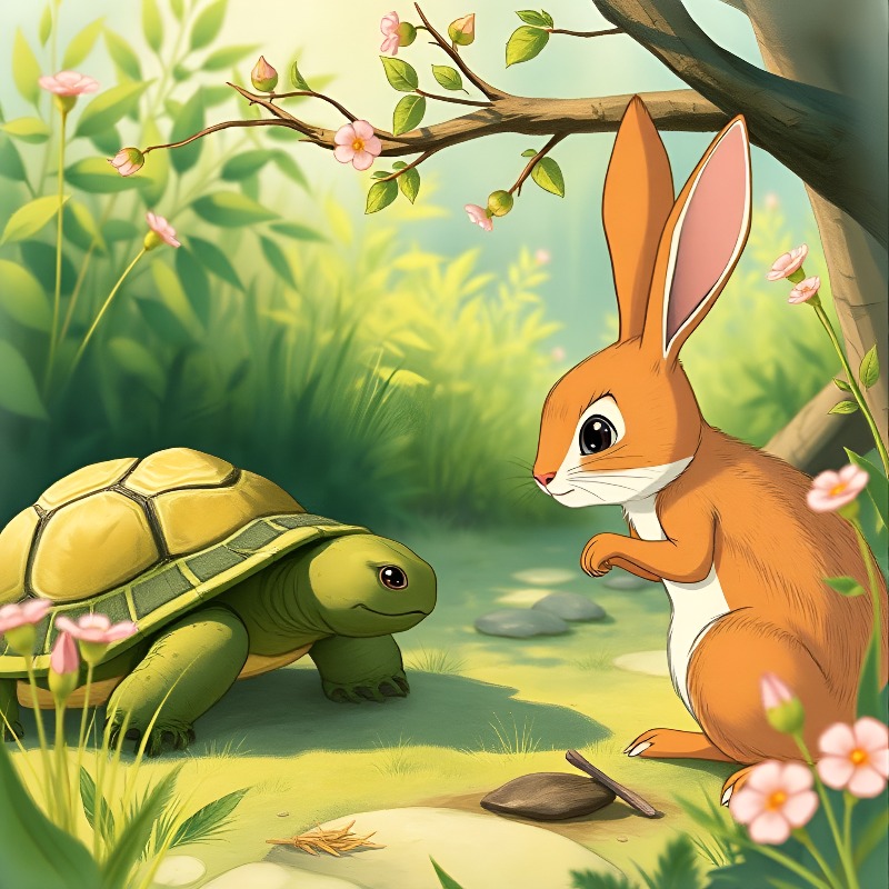 프롬프트 : 토끼와 거북이 우화를 상상한 장면