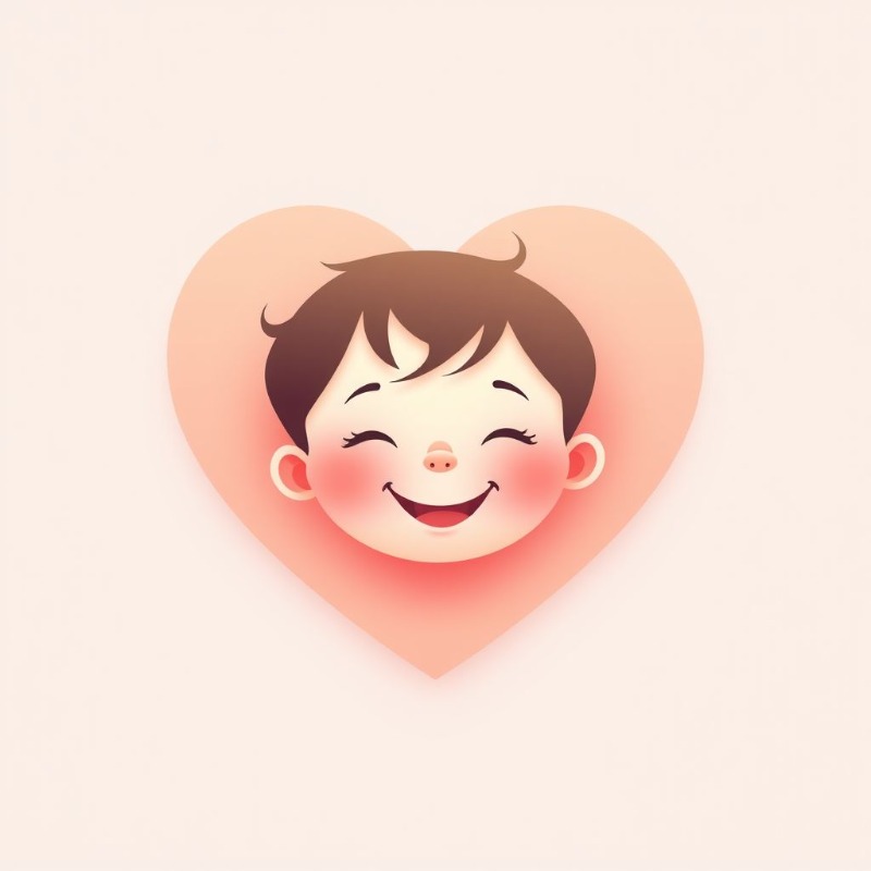 프롬프트 : 큰 하트 속에서 웃고 있는 어린 아이의 그림