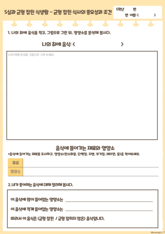 활동3. 내 최애 음식 영양소 분석하기 🗂️3-1. 최애 음식 분석하기 학습지