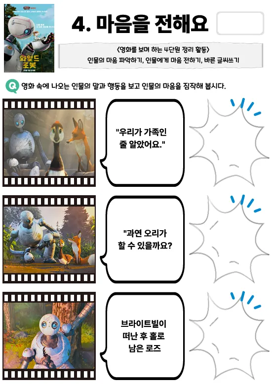 영화 와일드로봇 감상 활동지(국어2학년2학기 4단원 마무리)