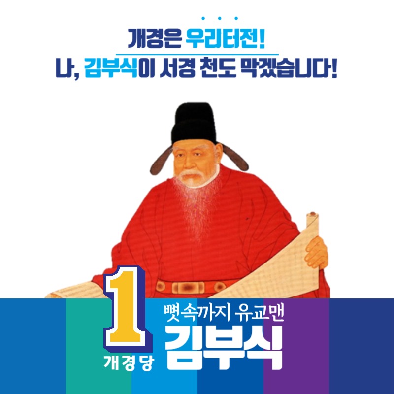 한국사 시간에 서경천도운동과 관련한 모의 선거 활동을 하면서 만든 선거 포스터입니다! 기호1번 개경당 김부식과 기호2번 서경당 묘청으로 만들어 사용했습니다. 때에 따라 서경천도운동 말고도 다양하게 활용할 수 있을 것 같습니다~^^