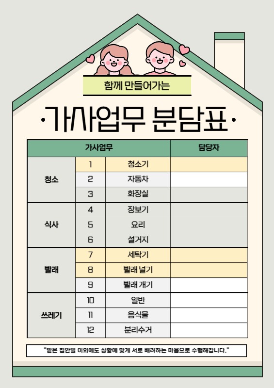 부모님과 집안일을 나눠보는 숙제낼때 너무 좋을거 같아요:)